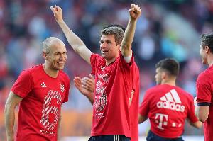 穆勒说:“罗本和里贝里在场上和场下是截然不同的球员,但他们都是世界级的。把我们所有人联系在一起的是对胜利的绝对渴望。因此,我非常高兴他们俩在我的队里踢了这么长时间,我们一起赢得了这么多冠军。作为对手,‘罗贝里’可是不太好防守的。”