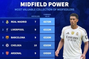 各队中场球员总身价排行