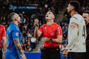 巴萨队长阿劳霍社媒晒出与卡索拉赛前选边的合照,配文:“很高兴与你同场竞技,大师。”