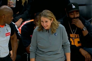 快船球星哈登再度来到水星主场观战,支持水星队。