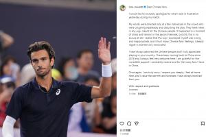 体育资讯09月27日讯 意大利选手穆塞蒂发布INS,向此前在中网比赛中吐槽观众咳嗽的失礼行为致歉。