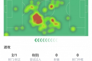 进1球、射门2次射正1次、丢失球权19次、预期进球0.8