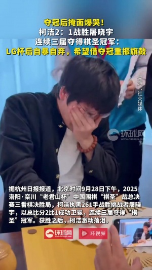 体育资讯09月29日讯 昨日下午,2025洛阳·栾川“老君山杯”中国围棋“棋圣”战总决赛三番棋决胜局,柯洁执黑261手战胜挑战者屠晓宇,以总比分2比1成功卫冕,连续三届夺得“棋圣”冠军。获胜之后,柯洁激动落泪。