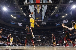 詹姆斯给这记隔扣打了9分,并表示:“哦,我的天啊。凯文-乐福是我的好哥们。今夏我跟他度过了许多时光。我还记得维尼恩(加布里埃尔)对此双手抱头的反应。我一开始真不知道当时扣的是谁。这个球你们真的让我很难办啊,我会打9分,我真想打10分的,但凯文是我的好哥们,所以没法给它打出满分10分。”