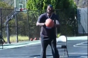 直播中詹姆斯三分投射总计13投2中,詹姆斯打趣道:“别想让我认真打球……要是被教练看到,我就有麻烦了,知道我现在在伤病名单里。”