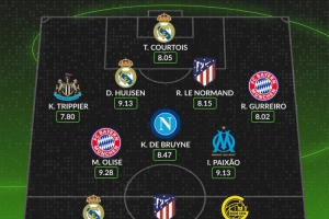后卫:特里皮尔(纽卡)、赫伊森(皇马)、勒诺尔芒(马竞)、格雷罗(拜仁)