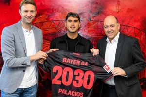 勒沃库森在其官方社交媒体晒出帕拉西奥斯照片,并配文写道:“帕拉西奥斯留下!他已经提前与勒沃库森续约至2030年。”