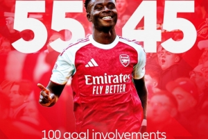 英超官方社媒晒海报向萨卡表示祝贺,并配文写道:萨卡在英超联赛中参与进球数突破100个👏
