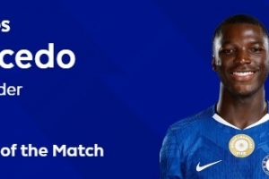 此役发挥出色的凯塞多以56%得票率,绝对优势当选英超官方全场最佳球员。