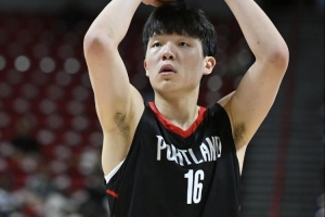 杨瀚森:目前来说好像还没有。就是跟着大家一起练,在场上有时候有一些不对的地方,大家跟我说,然后我去改正。