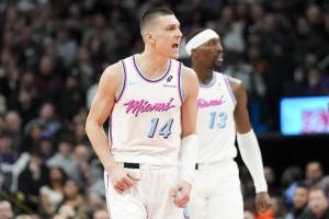 24-25赛季对热火来说是动荡的一年,他们和巴特勒关系破裂,最终在今年2月分道扬镳。球队常规赛37胜45负,排名东部第10。附加赛开始后,球队先在九、十名对决中109比90击败公牛,之后又在附加赛第二轮123比114击败老鹰,成功打进季后赛。