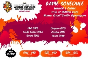 2026女篮世界杯预选赛武汉赛区日程出炉,比赛届时将在武汉体育中心体育馆进行,每个比赛日三场比赛。中国队日程安排如下(开球时间待定):