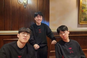 体育资讯10月9日讯 Keria发布跟Oner、Doran的T1上野辅三人合照:☺️