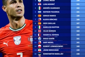 体育资讯10月10日讯 德国转会市场盘点了新世纪国家队出场数排行情况,C罗以223场居首,梅西194场次之,莫德里奇191场位居第三。