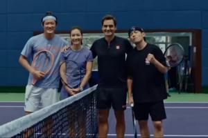 体育资讯10月13日讯 上海大师赛官方微博晒出了神仙组合:周杰伦、李娜、费德勒和张之臻进行双打的视频。