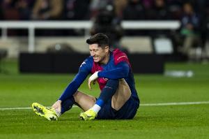 莱万在波兰国家队受伤,巴萨官方确认球员左大腿股二头肌肌肉撕裂。Javi Miguel进一步透露,莱万至少因伤缺席4周。