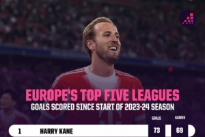体育资讯10月16日讯 根据OPTA的统计,自2023-24赛季以来,凯恩是五大联赛进球最多的球员,他69场联赛打进73球。