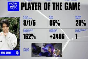 体育资讯10月16日讯 在刚刚结束的S15世界赛瑞士轮G2对战KOI的比赛中,Hans sama打出8/1/5的战绩,拿下本次比赛的MVP,这是他的第一个MVP。