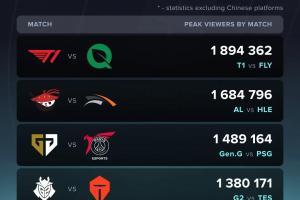 体育资讯10月16日讯 昨日瑞士轮首轮的比赛已经全部结束了,而今日凌晨外媒数据平台公布了昨日海外收视率前四的统计:其中T1以将近190万的收视人数遥遥领先。