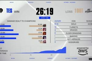 本场Bo1,TES仅耗时26分19秒,刷新本届S15最快比赛时长。