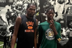 当被问到他是否期待与杜兰特在NBA赛场交手,迪班萨说:“是的,其实我都说了,他本应该等一段时间再被交易,然后等到我进联盟的时候,他应该去我的那支球队。不过他去了火箭我也能接受。”