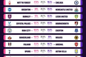 布莱顿vs纽卡斯尔:主胜38%,平26.5%,客胜35.5%