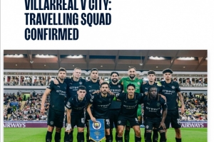体育资讯10月20日讯 曼城公布了10月22日周三客战比利亚雷亚尔的欧冠大名单。