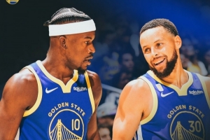 赛后勇士晒出赢球海报,球队两位老将库里和巴特勒一起登上封面!