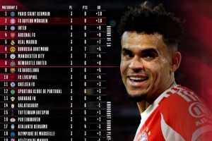 目前拜仁3战全胜,以10个净胜球排在欧冠联赛阶段的第2名,因进球数比巴黎少一个所以暂时排在第2名,下一场双方将迎来榜首之战。