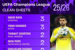 本赛季欧冠零封榜: