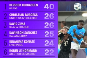 体育资讯10月23日讯 本赛季欧冠联赛阶段已战罢3轮,Squawka统计了到目前为止的对抗获胜榜单,卡拉巴赫后卫马修斯-席尔瓦33次第一,比利亚雷亚尔后卫圣地亚哥-穆里尼奥28次第二。