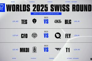 体育资讯10月24日讯 S15瑞士轮第五轮抽签仪式结束,LPL一号种子BLG将交手三号种子TES。