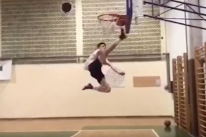 舍什科说:“是的,那确实是我。挺搞笑的,因为当时球卡在篮框,我也不知道为什么就想用脚去把它够下来。这可不是每个人都能做到的。”
