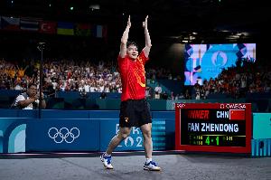 WTT球星挑战赛多哈站男单1/32决赛:周启豪3-2击败维卡诗·塔卡