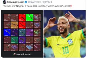 热爱CS2的巴西球星内马尔也未能幸免,据PriceEmpire披露,内马尔原本超过20万美元的个人《CS2》饰品库存,仅在过去24小时内就缩水约5万美元。