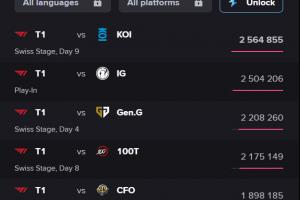 体育资讯10月25日讯 S15海外直播收视率更新,今天T1vsMKOI的瑞士轮出线生死战热度来到第一,超越T1vsiG的入围赛Bo5。