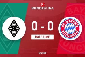 体育资讯10月25日讯 北京时间21:45,德甲第8轮门兴格拉德巴赫vs拜仁慕尼黑。上半场,迪亚斯开场失单刀;卡斯特罗普飞铲迪亚斯染红;于帕梅卡诺离谱手球染黄!半场结束,拜仁暂0-0门兴。
