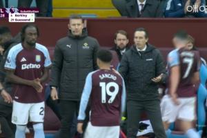 比赛第74分钟,桑乔被盖桑换下,本场比赛替补登场后又被换下,场上比分曼城0-1维拉。