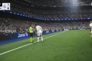 体育资讯10月26日讯 西甲第10轮,皇马vs巴萨,比赛第22分钟,贝林厄姆直塞,姆巴佩单刀破门,进球后贝林厄姆找到边裁说了些什么,边裁则回应了“🤏”手势。