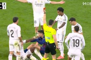 体育资讯10月27日讯 皇马vs巴萨第99分钟,佩德里趟球过大犯规吃到第2黄!此前拉拽维尼修斯染黄!