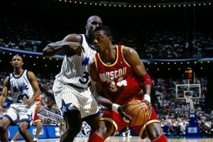 奥拉朱旺:“我认为我的打法体现在今天的比赛中。你知道,在今天的比赛里,面对大个子球员,我能在场上更充分地发挥。因为我相对于对手的优势,就是能将对方引到外线。试想一下,在禁区内与尤因、奥尼尔对抗,那可是他们擅长的打法。所以,我必须更像一名小前锋那样去比赛。但教练们希望我一直打内线。所以,如果你投丢了两三个跳投,能有(打内线这个)备选方案是很好的。”