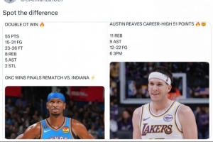 赛后美媒露天看台晒出了里夫斯的数据但没写上罚球数据,而此前亚历山大对步行者砍下55分的比赛数据却有写上罚球,雷霆随队记者Clemente Almanza对此写道:“发现了区别。”