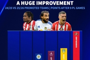 体育资讯10月27日讯 英超联赛9轮战罢,桑德兰高居积分榜第二位,另外两支升班马也表现不俗。