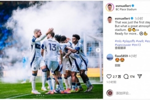 体育资讯10月28日讯 美职联季后赛第一轮首场比赛,穆勒点射破门,温哥华白浪主场3-0击败达拉斯FC,占据晋级先机。
