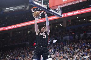 此役开拓者中锋克林根高效发挥,打了26分钟12投8中,三分3中0拿到16分14篮板2助攻1抢断2盖帽,正负值+21并列最高。