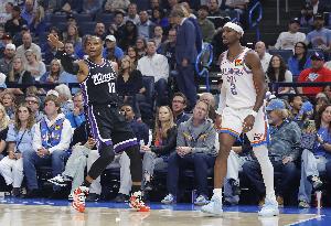 国王进攻打得热闹,但防守能力和雷霆存在巨大差距:维金斯强突威少、华莱士冲击拉文一条龙、多特强突德罗赞造杀伤、亚历山大一条龙过掉威少上篮,国王首发四后卫的防守能力都扛不住雷霆的点对点爆破。