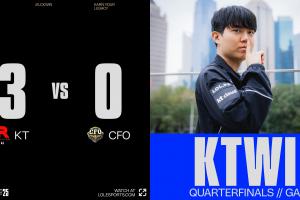 体育资讯10月29日讯 2025全球总决赛淘汰赛阶段,CFO惨遭KT横扫淘汰,八强出局。