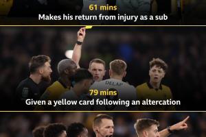 德拉普时隔2个月登场,替补25分钟撞人两黄变一红被罚下
