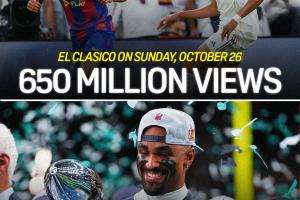 体育资讯10月30日讯 据知名转播商DAZN报道,上场西班牙国家德比,皇马2-1战胜巴萨的比赛,全球总计观看达到6.5亿人次,超过近5届超级碗收视率之和,近5届超级碗总计观看人次约为5.8亿。