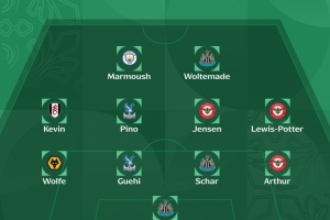 中场:凯文-桑托斯(富勒姆)、皮诺(水晶宫)、延森(布伦特福德)、刘易斯-波特(布伦特福德)